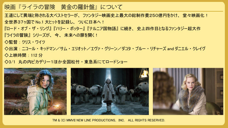 | この『ライラの冒険 黄金の羅針盤』は2009年9月23日(祝)で営業終了となりました |