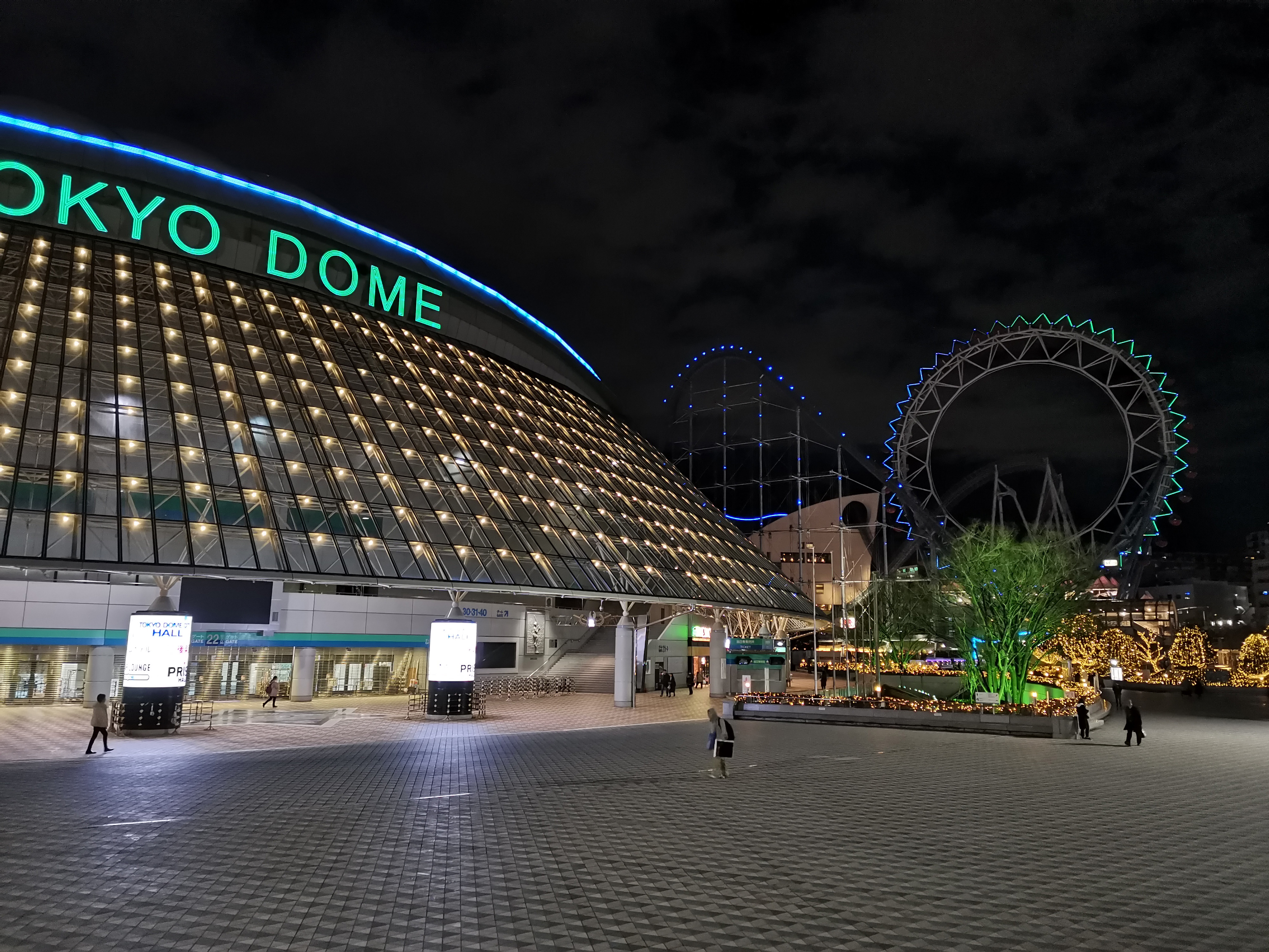 そして『HUAWEI nova 5T』が最も威力を発揮するというのが夜景撮影。東京ドームシティにて撮影した写真は、普通に手持ちで構えて、そのまま撮影したもの。特にがっしりとも構えず、確実に手ぶれしそうな状況下でしたが、隅々までわずかなボケもなくビシッとした写真に仕上がっていて、撮った自分もびっくり。
