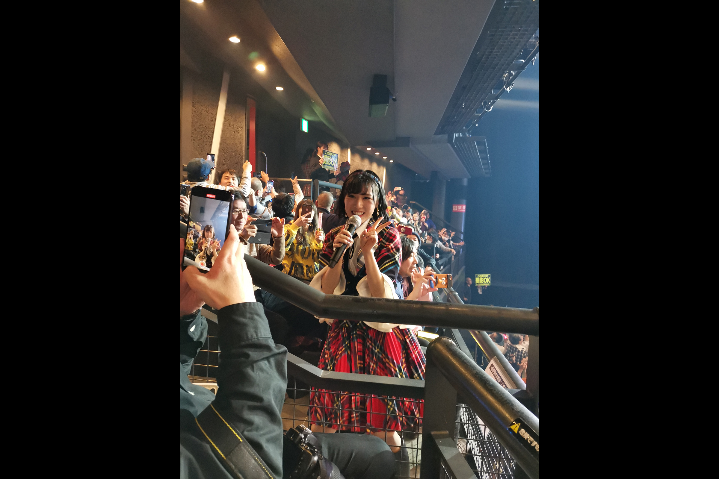 写真はAKB48のライブ(スマホ撮影OKタイム)での1コマ。メンバーから離れていたので2×にして超高速連写。ハイコントラスト環境での適正露出やペタピンもすごい。