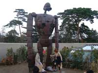 屋上の『まもり神』は、美術館のシンボル。館外は撮影自由なので、記念写真の行列ができます。『天空の城ラピュタ』のロボット兵なのは来訪者の常識?(ルパンシリーズでも1度登場) | ||||||||||||||
