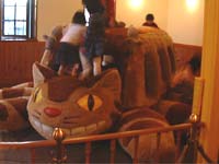 子供たちが大好きなネコバスが2階で待っています。ネコバスに乗れたらイイナ!トトロに会いたいナ!という思いは、子供だけでなく大人も共通の願い。残念ながらネコバスの部屋に入れるのは小学生まで。バスの横には、多くのマックロクロスケたちもいます。フワフワ感が楽しそう。 | ||||||||||||||