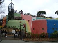 | ▼屋上の『まもり神』。高さは5.2m | ▼アニメの世界を意識した外観 | ▼ネコバス(小学生以下のみ) |